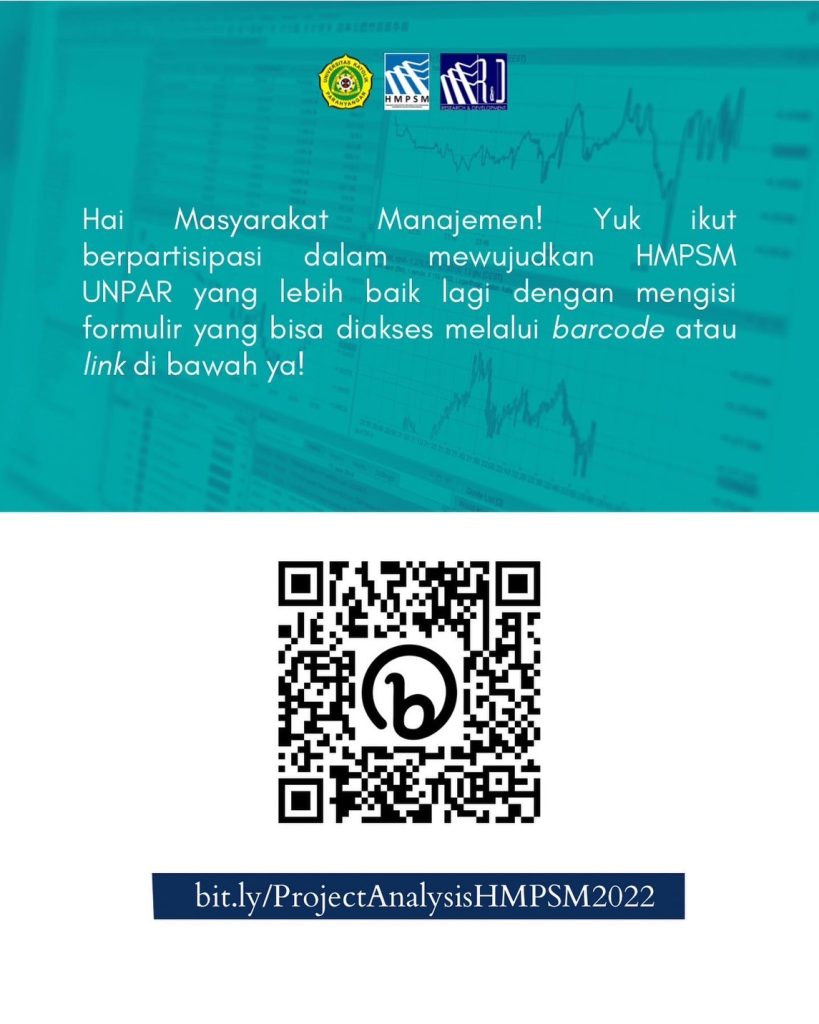 Project Analysis 2022 which will be held from December 12, 2022 to Friday, December 16, 2022 through the Google Form online platform. Project Analysis 2022 has the theme Developing a High Performing Organization through Evaluation. The purpose of the implementation of the Project Analysis Work Program is to evaluate one period of HMPSM management thoroughly for improvement in the next period. The implementation of the Project Analysis 2022 Work Program begins with the preparation of a Google Form questionnaire which is divided into several sections that can evaluate the management of HMPSM regarding divisions, functional-functions, and work programs. Furthermore, on December 12 – 16, 2022, all management of HMPSM UNPAR distributed the Project Analysis 2022 questionnaire in the form of a google form to members of HMPSM UNPAR starting from the class of 2015 to the class of 2022 via personal chat. This Project Analysis 2022 activity was also published through Instagram @hmspm_unpar, Line @HMPSM and line group Class of 2018, 2019, 2020, 2021, and 2022. Then, the results obtained will be processed data and made into an evaluation report by the committee.