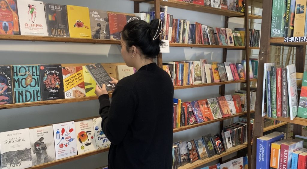 Shooting episode 2 dengan judul “Pertama Kali Nyoba Book Cafe di Bandung” pada tanggal 30 Juni 2023, dengan berlokasi di Kineruku Bandung. Diawali dengan briefing tim Epilogue bersama talent dengan rentang waktu pukul 11:30 hingga pukul 11:40. Selanjutnya, tim bersama talent melakukan perjalanan menuju Kineruku yang terletak di Hegarmanah Kota Bandung dan kami sampai pukul 12:00. Setelah sampai di Kineruku[1] , kami melakukan persiapan terlebih dahulu seperti menyiapkan peralatan shooting dan make up talent. Setelah semua persiapan beres kami memulai shooting pukul 12:10 dengan berjalan-jalan di sekitar Kineruku terlebih dahulu sebelum masuk ke tujuan utama kita yaitu Kineruku. Setelah selesai berjalan di sekitar Kineruku kami mulai masuk ke dalam cafe pukul 12:30 yang selanjutnya di depan pintu ada pegawai yang bertugas membantu kami memasukan tas ke dalam loker karena tidak diperbolehkan membawa tas. Setelah pengecekan selesai kami dipersilahkan untuk memasuki cafe, dan di dalam cafe kami banyak explore buku dan makanan yang dapat direkomendasikan kepada penonton. Setelah puas explore tempat kami mengakhiri shooting episode 2 ini pada pukul 14:45 dan terakhir sebagai penutup kami melakukan foto bersama sebagai bentuk dokumentasi.