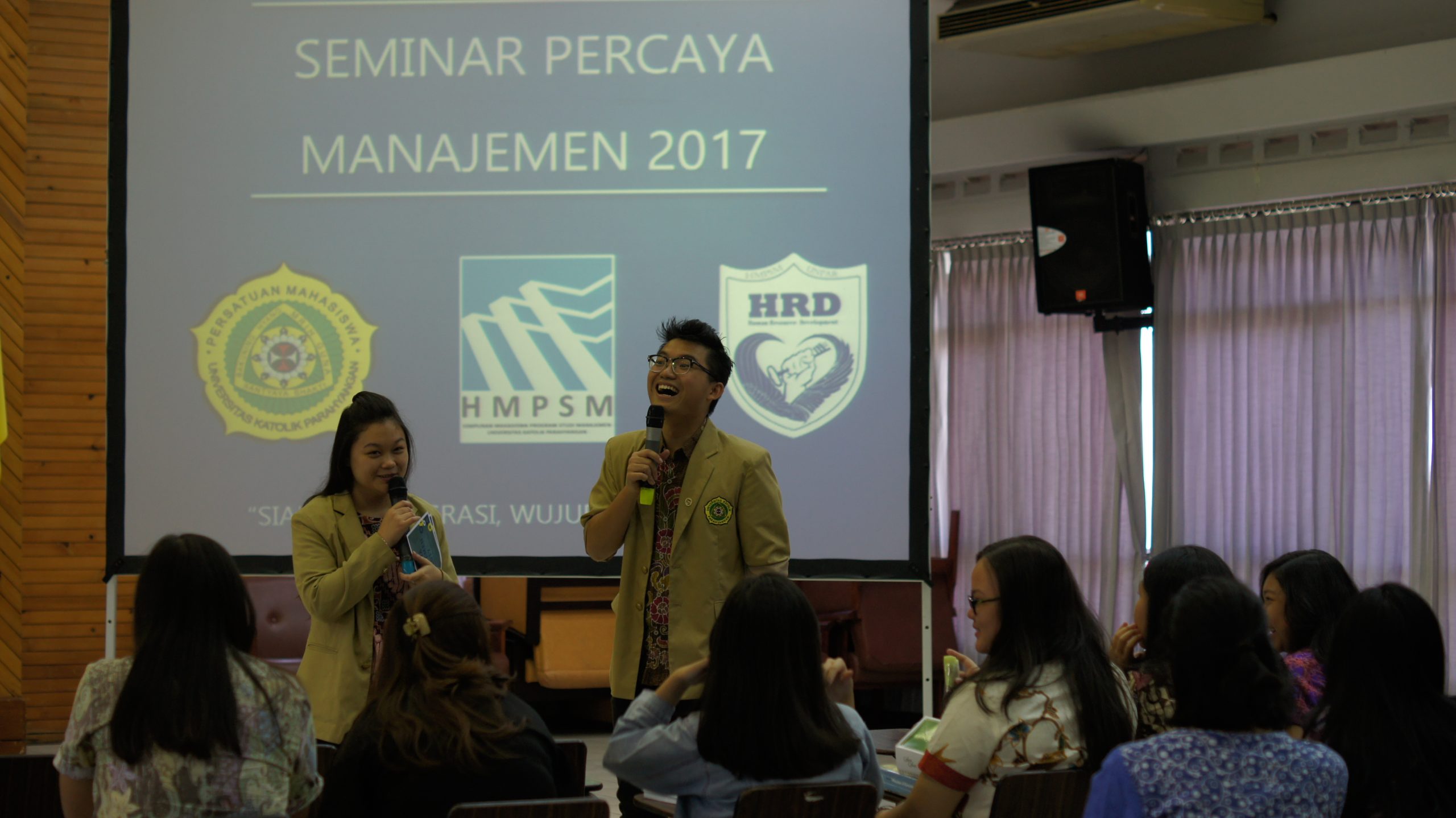 Kegiatan Percaya Manajamen 2017 telah dilaksanakan pada tanggal 19 September 2017 di Aula gedung 9 Fakultas Ekonomi Universitas Katolik Parahyangan. Panitia dari Percaya Manajemen 2017  sudah berkumpul dari pukul 09.30 WIB untuk melakukan checksound dan  briefing.  Lalu, kegiatan ini dimulai (open gate) pukul 10.30 WIB. Kegiatan ini dibuka dengan pendataan dan pemberian snack kepada peserta yang dilakukan oleh divisi publikasi serta ada sambutan dari MC untuk peserta yang telah memasuki ruangan.
