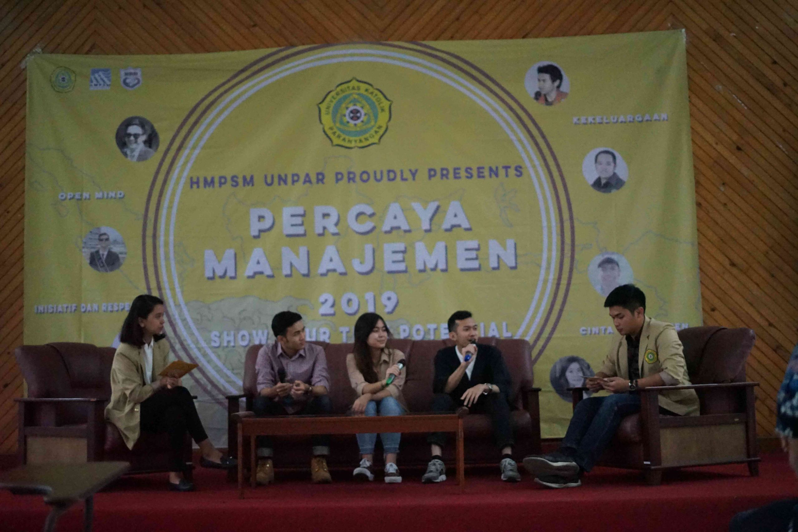 Kegiatan Seminar dan Workshop Percaya Manajemen ini dilaksanakan pada hari Kamis, 19 September 2019 dan bertempat di Aula lt.8 Gedung 9 Fakultas Ekonomi Universitas Katolik Parahyangan. Peserta yang mengikuti kegiatan ini yaitu mahasiswa Program Studi Manajemen UNPAR angkatan 2019. Pada hari pelaksanaannya, pintu masuk Aula dibuka pukul 09.30 dan di depan pintu masuk itu pula peserta melakukan registrasi. Selanjutnya peserta yang telah melakukan registrasi diarahkan mentor untuk mengisi kursi di bagian depan dan untuk tidak menggunakan handphone pada saat acara berlangsung.