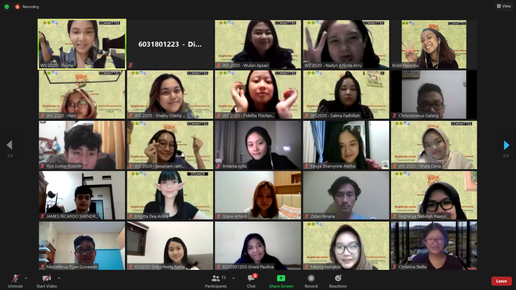 Workshop (WS) 2020 merupakan salah satu program kerja di Himpunan Mahasiswa Prodi Sarjana Manajemen (HMPSM) Universitas Katolik Parahyangan (UNPAR) divisi Human Resource and Development. Workshop 2020 membantu masyarakat aktif manajemen UNPAR dalam mengembangkan softskill, potensi serta bakatnya dengan memberikan pelatihan secara langsung (learning by doing) yang dilaksanakan setiap tahun. Workshop 2020 dilaksanakan pada hari Sabtu tanggal 24 Oktober 2020 via Zoom Meeting yang dimulai pada pukul 15.00 WIB mengenai softskill kreativitas. Pada kesempatan kali ini Workshop 2020 menghadirkan 2 pemateri dari GOJEK yang membagian pengalaman dan pembelajaran mereka bertemakan “Entering Industry 4.0 through Copywriting and Creative Digital Marketing”. Pembagian pangalaman dan pembelajaran diakhiri dengan sesi tanya jawab dengan pemateri dan pengumpulan tugas peserta yang akan dinilai langsung oleh pemateri dan para pemenang yang beruntung mendapatkan hadiah berupa uang yang dikirim melalui GoPay/OVO.